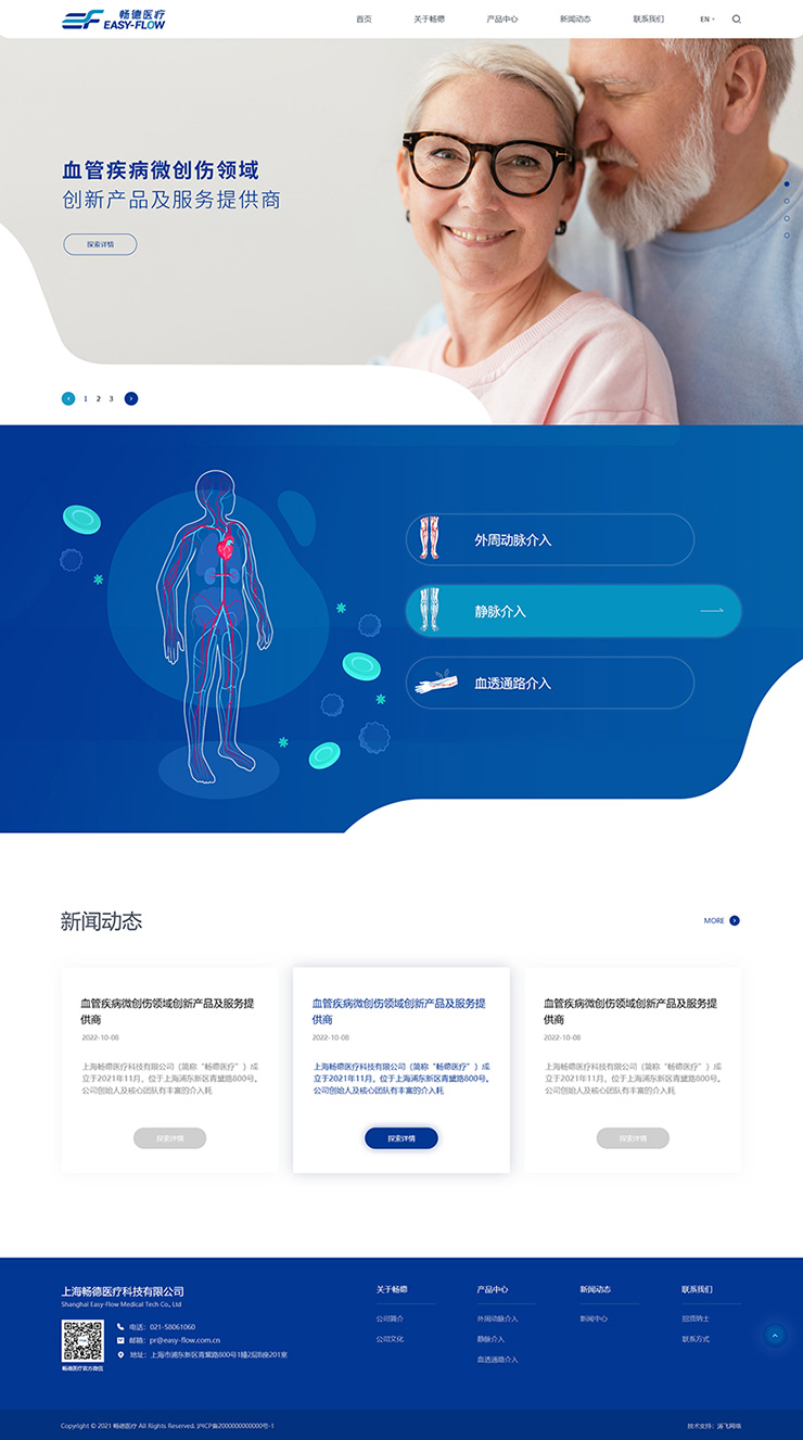 畅德医疗的业务面向国内及国外,所以网站需要中英文双语版本,主要向用户展示公司介绍、解决方案、产品系列以及B体育BSport等信息。