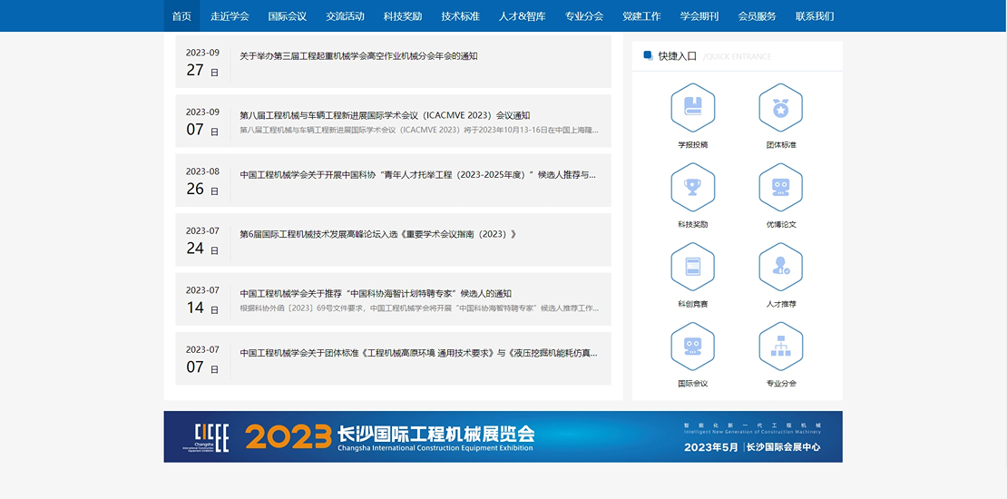 中国工程机械学会是由从事工程机械研究相关的企事业单位和科技工作者自愿组成的全国性非营利性的学术性组织,于1993年由“挖掘机械研究会”“工程起重机械研究会”“铲土运输机械研究会”“工程机械液压技术研究会”“工程机械测试技术研究会”等5个相关的研究会联合成立,1995年经中国科协审查、批准报民政部登记。