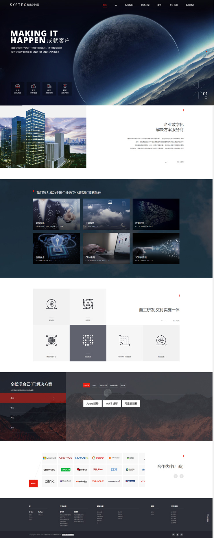 为应对公司发展,建立大陆对外展示的官方网站,网站需要体现出公司现有的行业解决方案以及服务优势。